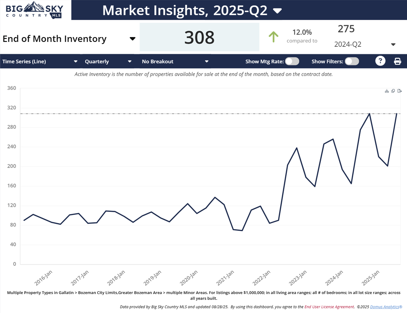 Chart 2: All Bozeman Residential over $1M, properties for sale, Q2 2025.