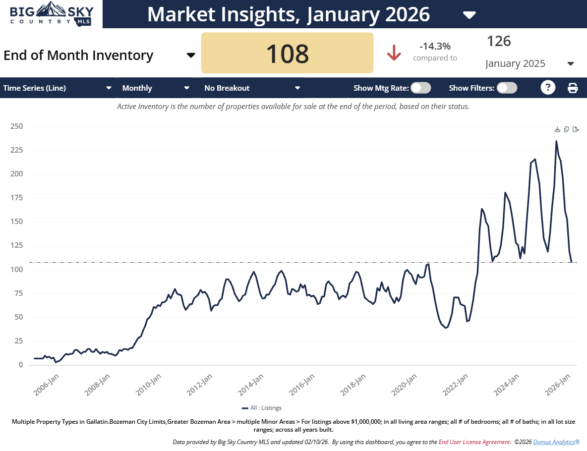 Photo Number of Bozeman luxury properties for sale over $1M Q4 2025.