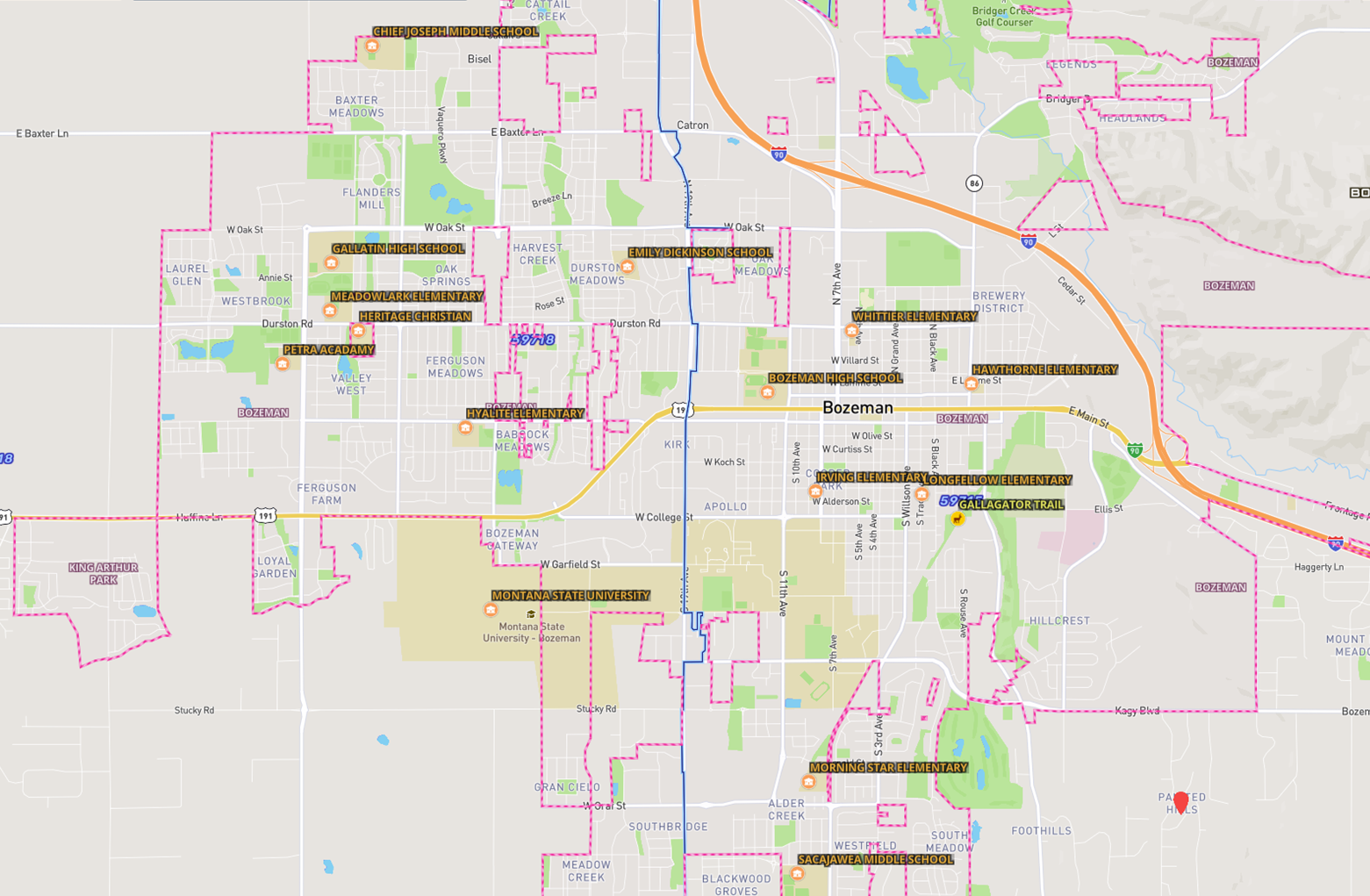 Bozeman, MT Schools Map.