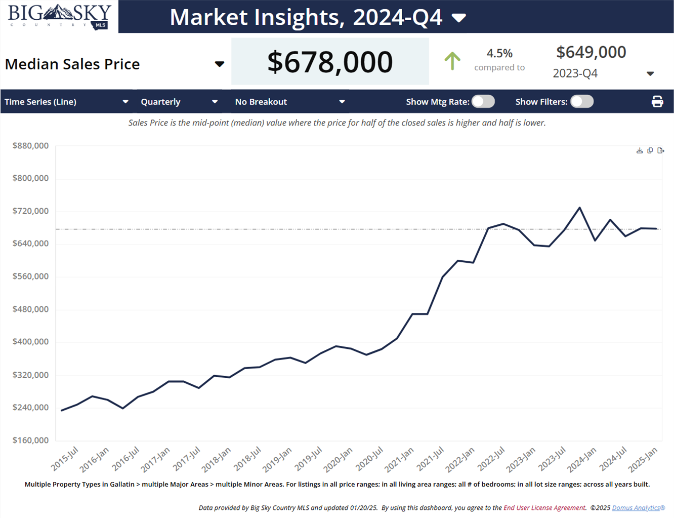 Q2 2024 Report Pending: The median price of real estate in Gallatin County, MT is $678,000