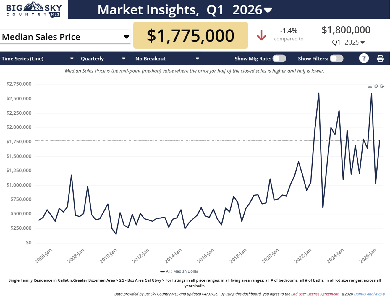 Chart 1: Gallatin Gateway, Montana home sales price, Q1 2026.