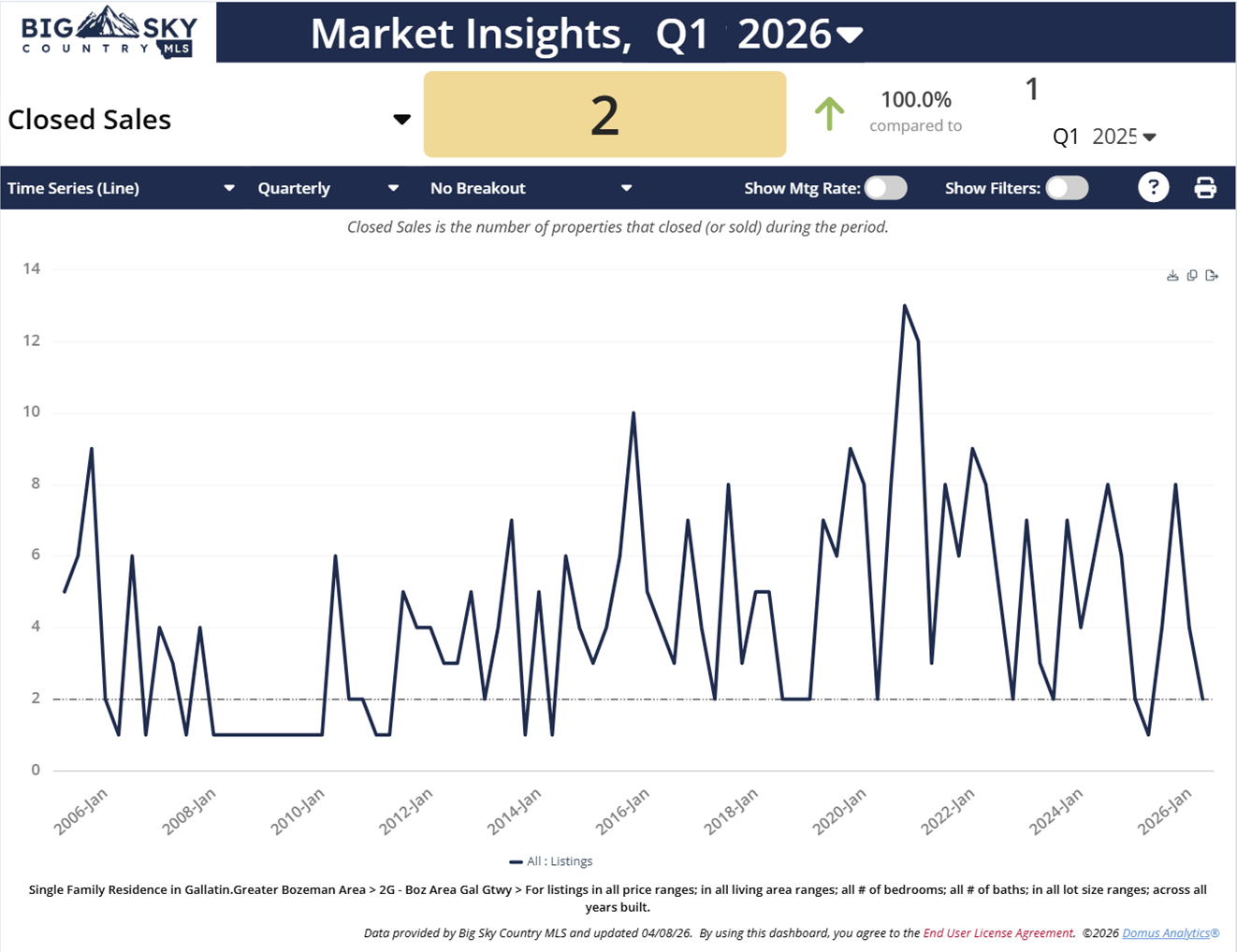 Chart 2: Gallatin Gateway, Montana homes, Q1 2026.