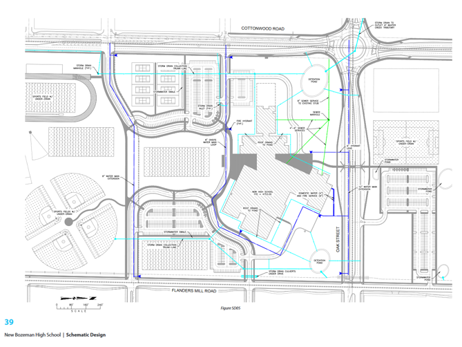 Rapid growth in student population in the Gallatin Valley warranted this second high school, which is being built on 57 acres, bordered by Durston Road to the south, Flanders Mill Road to the east, West Oak Street to the north, and North Cottonwood Road to the west.