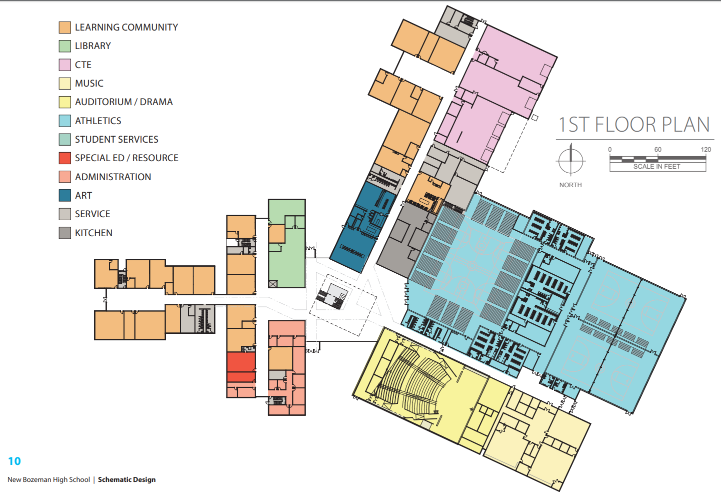 In May 2017, the Board of the Bozeman School District unanimously approved the architects’ and engineers’ 143-page schematic/preliminary design for the 304,000 sf new High School in West Bozeman. Address for Gallatin High School is 4455 Annie Street, Bozeman, MT 59718.