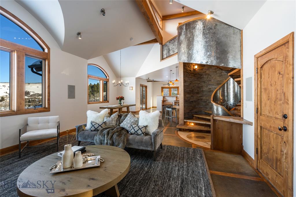 Step away from the linear and into this unique Bozeman area home with just the right touch of graceful curves.